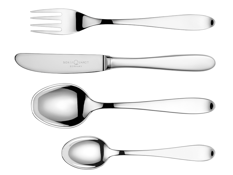 Handgefertigtes 4-teiliges Kinderbesteck bestehend aus Kinderlöffel (15,5 cm), Breilöffel (13 cm) Kindergabel (15,5 cm) und Kindermesser (17 cm). Ob zur Taufe, Geburt oder als Geburtstagsgeschenk, dass in Deutschland in reiner Handarbeit gefertigte Kinderbesteck ist in 925 Sterling Silber oder einer hochwertigen 150g Versilberung erhältlich. Neben der klaren Form und Eleganz wirkt Silber antibakteriell und ist deswegen besonders bei Babys und Kleinkindern Edelstahlbestecken vorzuziehen. Das Kinderbesteck wird in einer hochwertigen Geschenkverpackung geliefert und ist ein Geschenk, welches ein Leben lang an glückliche Kindertage erinnern wird. Es besteht die Möglichkeit das Besteck mit einer individuellen Gravur zu versehen, wodurch sie diesem wundervollen Geschenk eine ganz persönliche Note verleihen.